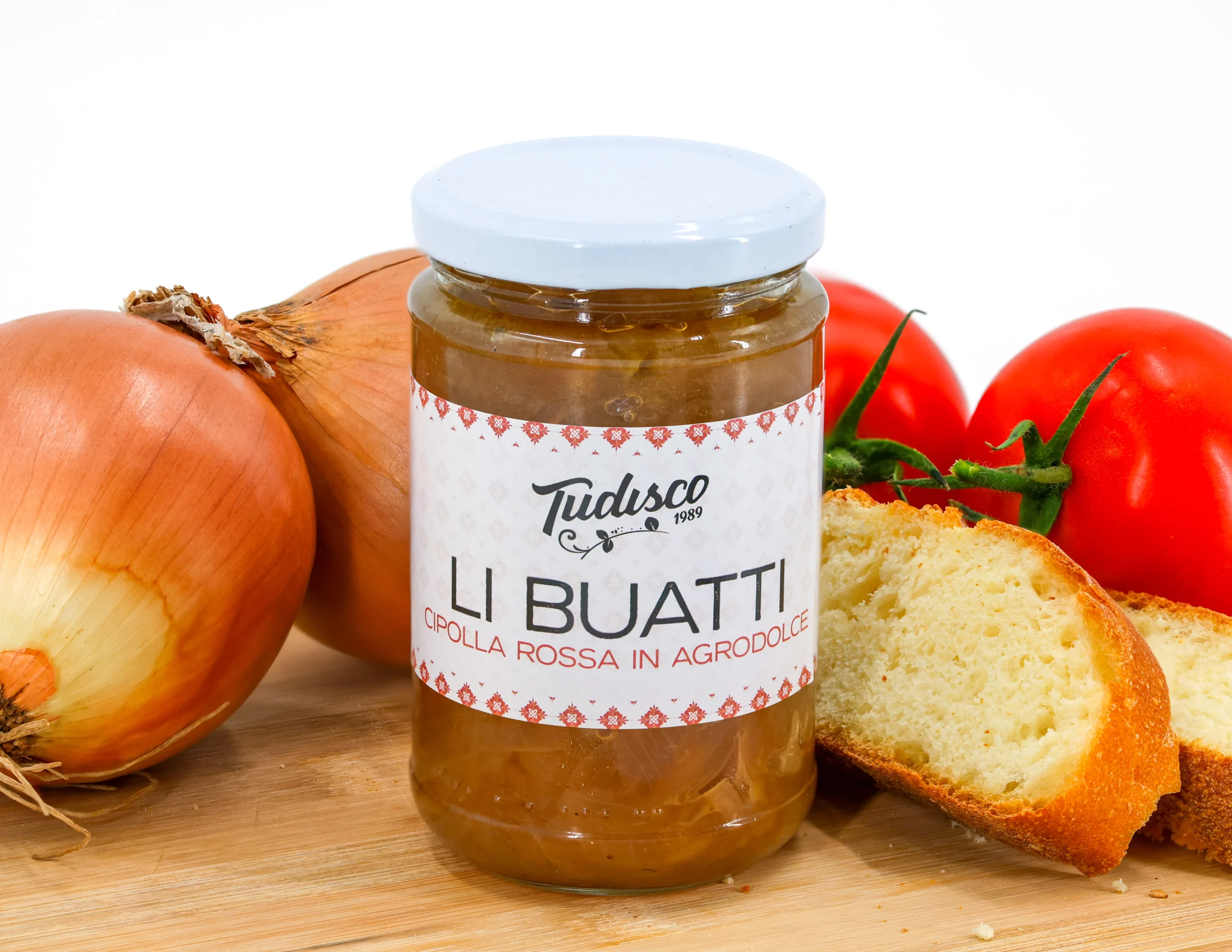 Cipolla, olio EVO, aceto, zucchero e aromi naturali.